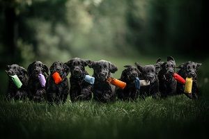 Woche 8 zum Abschluss wie immer unser Dummy Fotoshooting, alle Welpen haben superbrav das Dummy getragen.